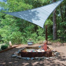 When hanging shade cloth pieces larger than 100 sq. ft., you may need extra center support to prevent the cloth from sagging in the middle. One easy way to do this is by running lightweight cable from corner to opposite corner, forming an X pattern that the cloth can rest on. For pieces larger than 400 sq. ft., you may need cables running end to end every 4′ or so.