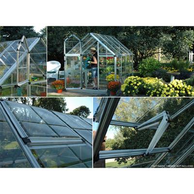 The Snap & Grow Silver 6′ wide x 8′ long greenhouse has been engineered from the ground up to get you growing quickly. It features the innovative SmartLock connector system that allows you to assemble the heavy-duty, aluminum frame quickly and easily without a lot of hardware. The innovative split door and vent windows are even preassembled out of the box! The tough, crystal-clear SnapGlas panels simply slide and lock into place without any complicated tools or hardware.
